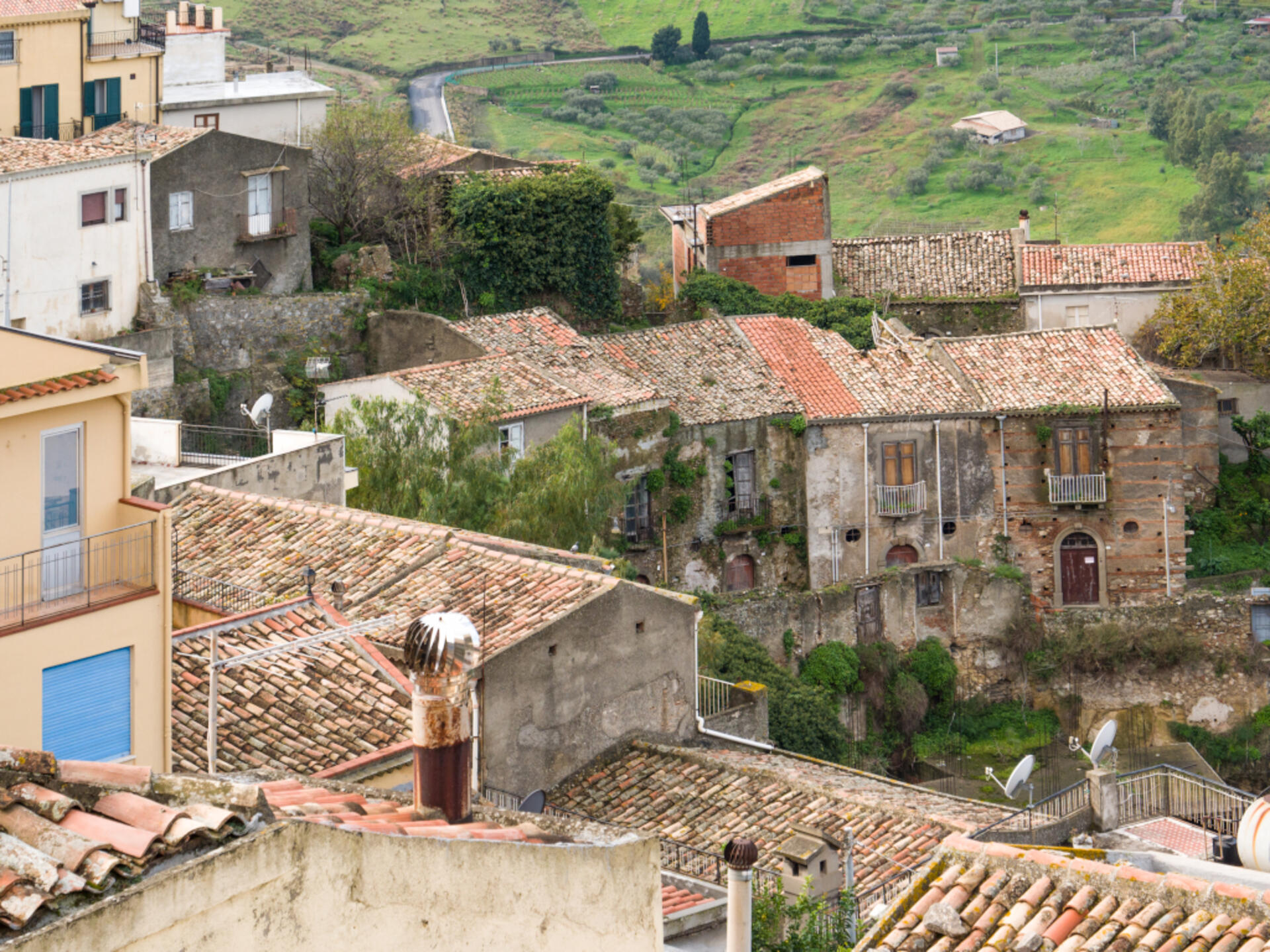 Il tessuto urbano è d'impronta medievale con strade e viuzze strette e ripide, lastricate con una caratteristica pavimentazione in pietra (jacatu nel dialetto locale), che si aprono su piazze-belvedere dalle quali si può godere dei molteplici panorami che si dispiegano tutt'intorno al paese.
